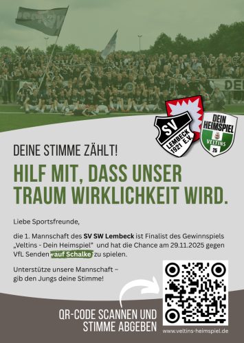 Unsere erste Mannschaft des SV Lembeck hat die einmalige Chance, ein echtes Heimspiel in der VELTINS-Arena auf Schalke auszutragen – ein Traum, den wohl jeder Fußballfan aus unserer Region kennt!