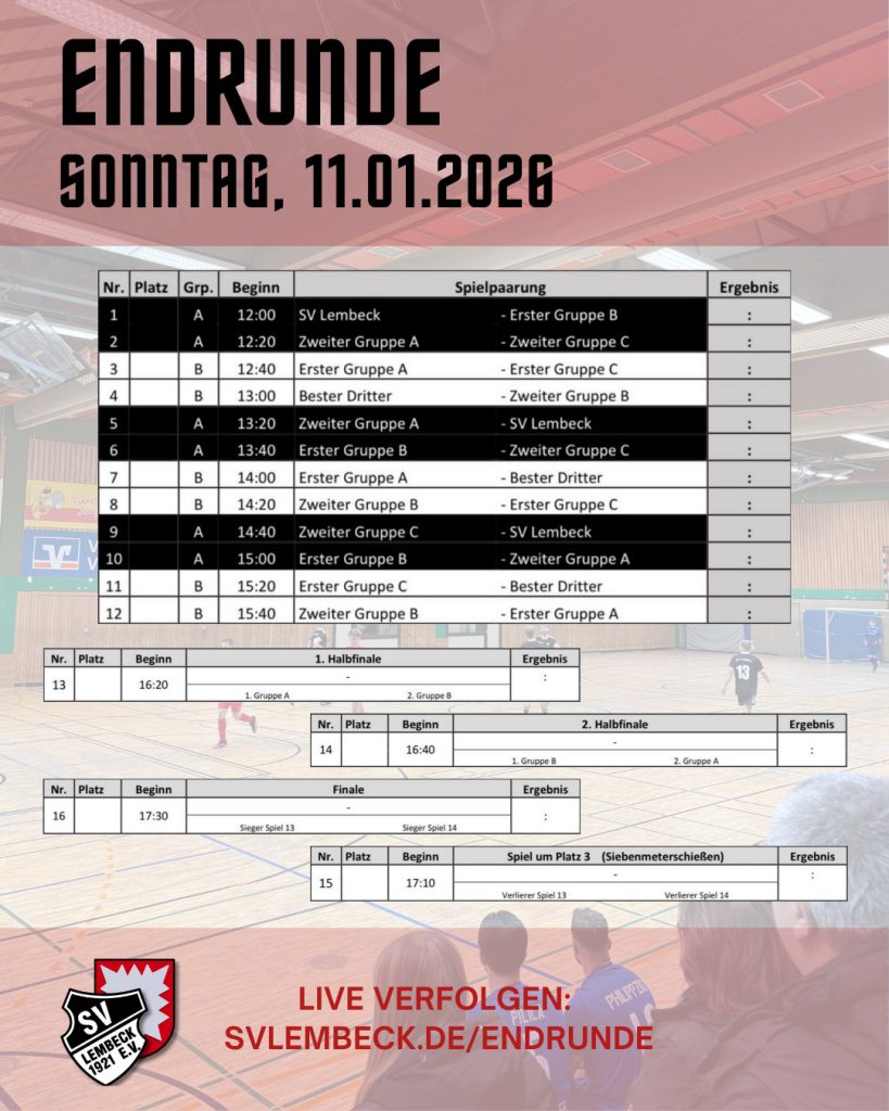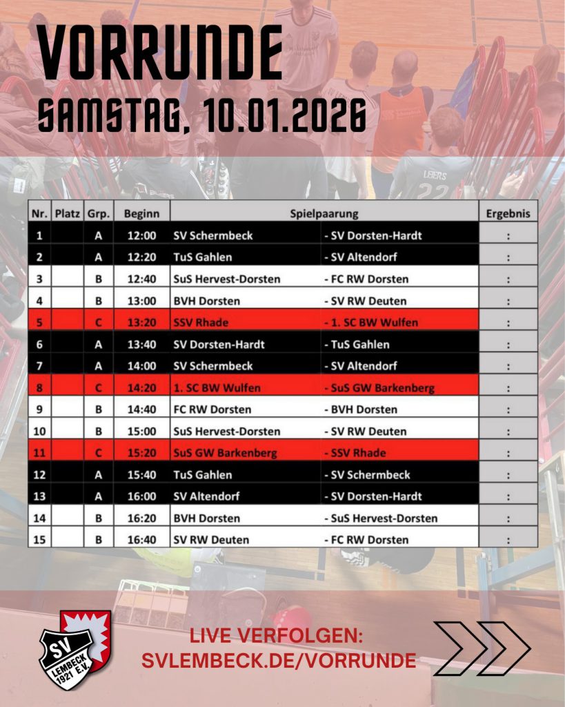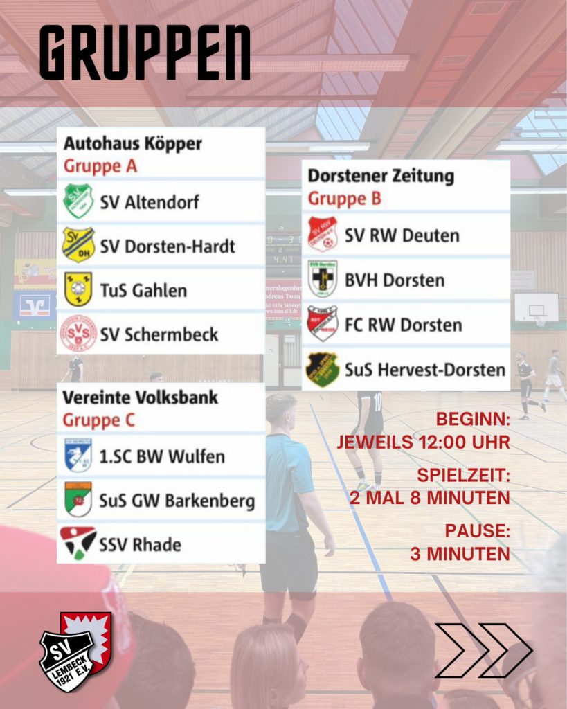 Die Dorstener Hallenfußball-Stadtmeisterschaft steht an und wir vom SV Lembeck sind stolz, Ausrichter zu sein.