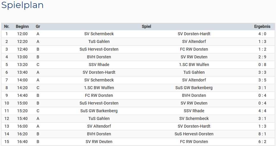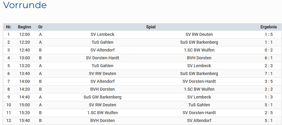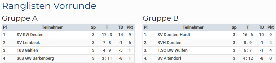 Nachfolgend findet ihr die Ergebnisse der Vor- und Endrunde.